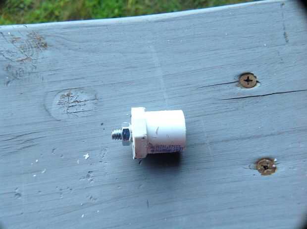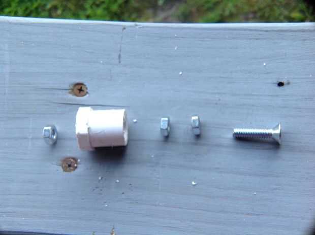 Puse una de las tuercas del perno y rosca hasta la cabeza del perno. (Tengo va en la foto de dos tuercas a la cabeza de la tuerca, pero sólo una es necesaria).