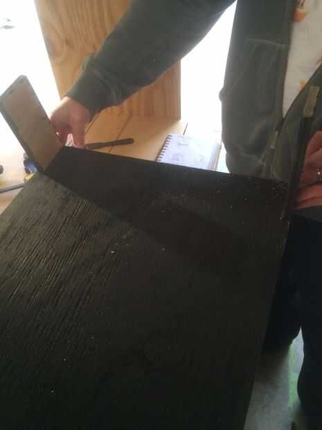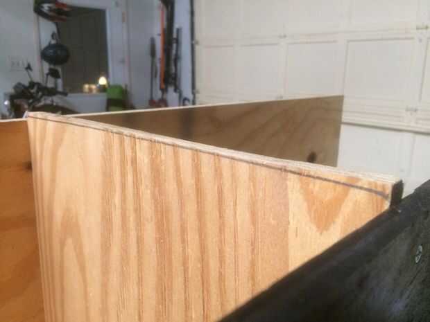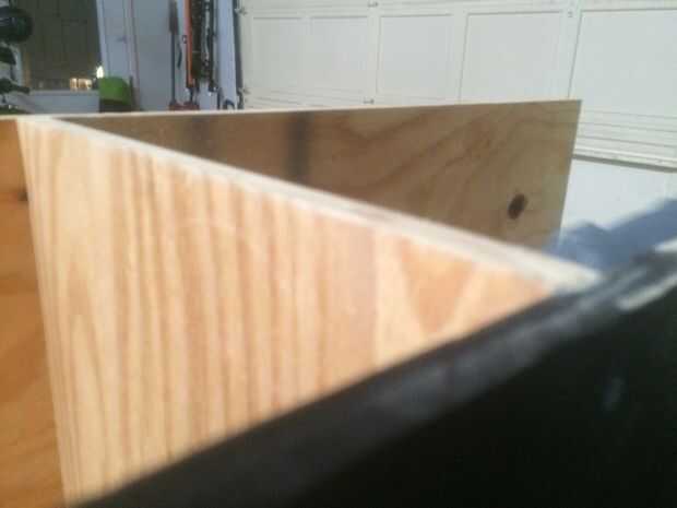 Nota: Si usted hizo cualquier medición leve o errores de corte como lo hice (es decir, 1/16 de pulgada demasiado grande) y de las juntas no están al ras una lijadora de banda será tú mejor amigo. Arriba son un antes y un después de correa que enarena de cuando dos placas no al ras.