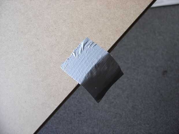 Después de girar los tableros de, coloque la segunda pieza de cinta adhesiva para que la mitad es sobre el borde. Esta debe estar alineada con la primera pieza que se deja en el otro lado.