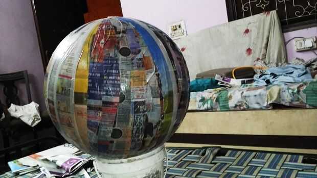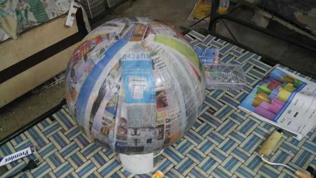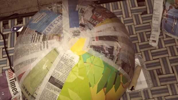 Cuando se han cubierto la bola con 1 capa de periódico suavizar la capa usando un rodillo.