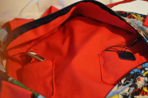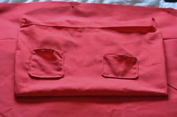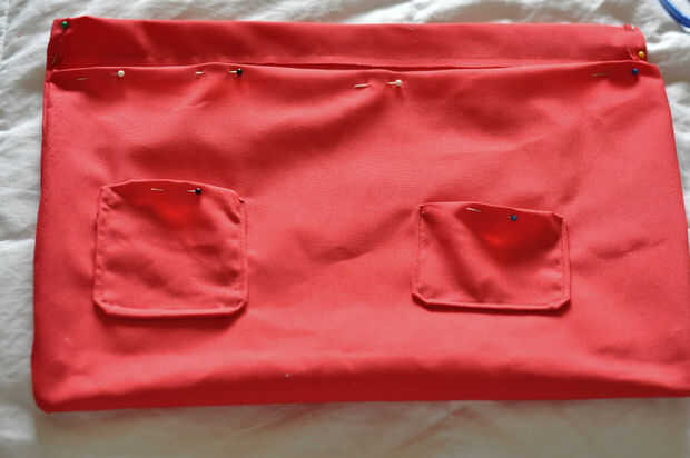 2. Si quieres bolsas y bolsas con su bolsa, es más fácil atarlos ahora. Quería un bolsillo interior con algunos bolsillos pequeños en el exterior para mantener mi gimnasio cerradura y iPod. Yo también quería una bolsa en el exterior para mantener mi botella de agua. Puede utilizar los retazos de tela u otros retazos de tela que tenga a mano. Acabo de hacer bolsillos rectangulares simples. Coser por tres de los bordes y girar a la derecha hacia fuera. Coserlas en el interior o fuera de las bolsas.