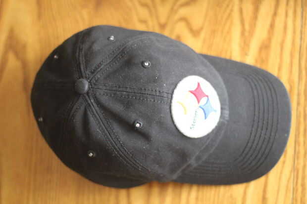 Cabido casquillos en su cabeza exacta del tamaño (por ejemplo; S, M, L, XL) son los más fáciles de trabajar con debido a la banda de la banda de la cabeza todo el camino alrededor de la tapa sin interrupción. Pero talla única tapones pueden utilizarse probablemente con una planificación adecuada. Usé un 47 marca oficial NFL cabido casquillo de Steelers.