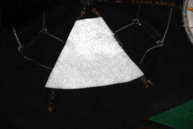Usted puede usar el sombrero en este momento, pero para sujetar más firmemente el LED en su lugar y evitar que su cabello pegado en los cables, tienes que cubrir la parte interior superior del sombrero con fieltro.