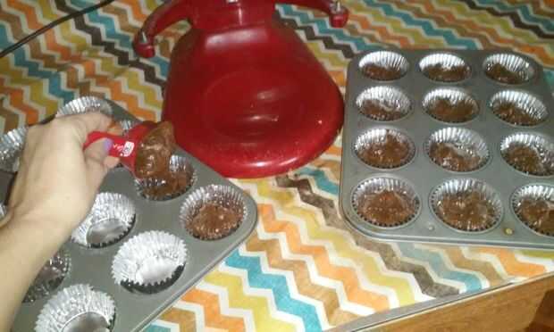 8. Coloque la masa en forros de papel en la bandeja de la Magdalena, llene 2/3 por completo.