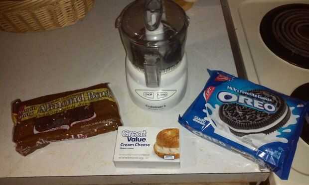 1 paquete galletas Oreo finamente triturado... con un procesador de alimentos, o usar un rodillo en una bolsa Ziploc.