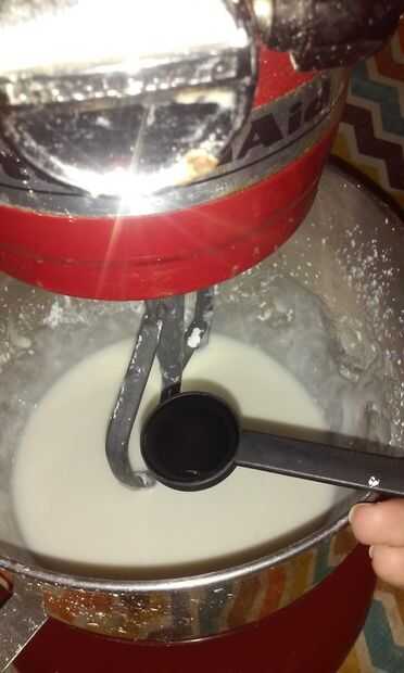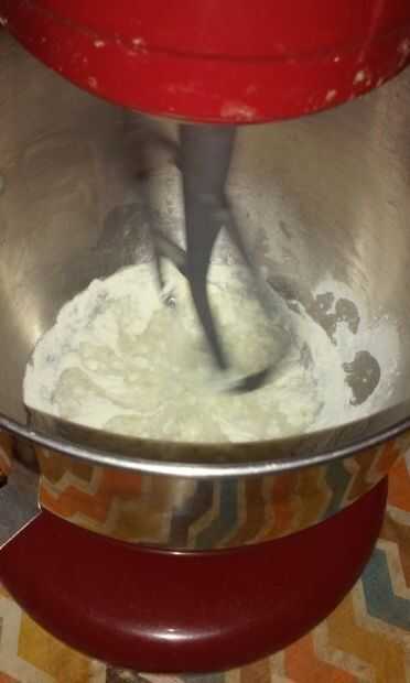 1. con el accesorio de paleta, mezclar el agua y merengue en polvo en baja hasta combinar y luego en alta aproximadamente un minuto hasta que quede espumosa.