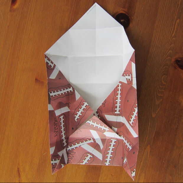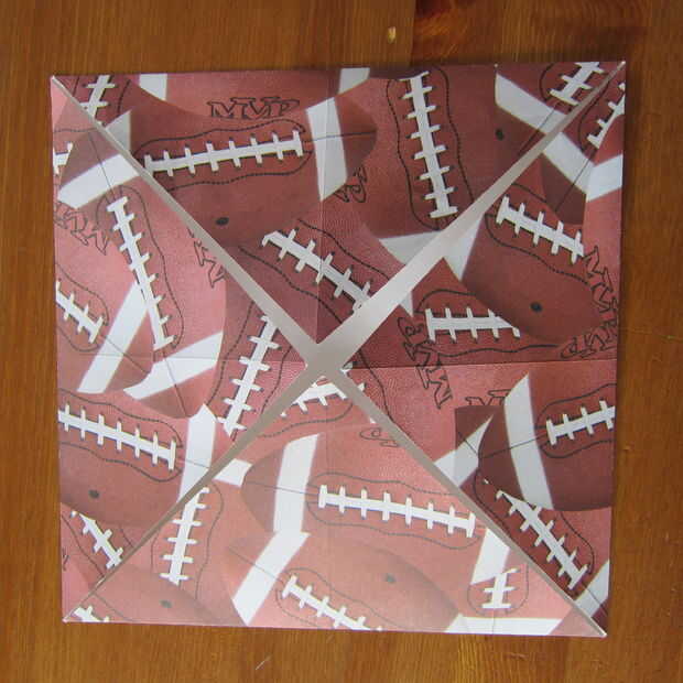 Desdoble el papel y doblar cada esquina en el centro del papel (para que tengas un cuadrado pequeño). Gire el papel y doblar una parte plana en el centro. Convertir papel y repetir en otro lado.