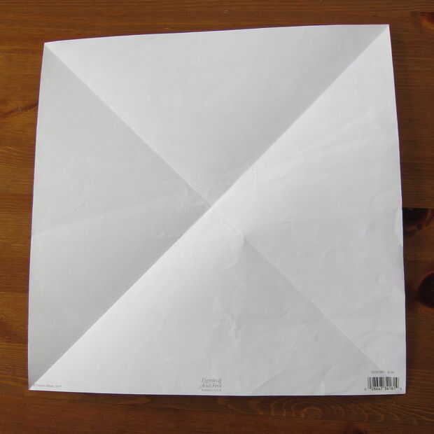 Usando una pieza cuadrada de doblez de papel diagonalmente dos maneras para hacer una 'x' de esquina a esquina.