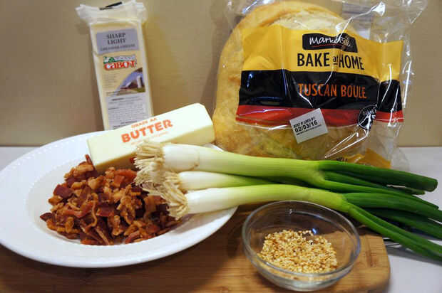 Toscana Boule pan, masa agria o cualquier pan redondo similar que complementan la receta