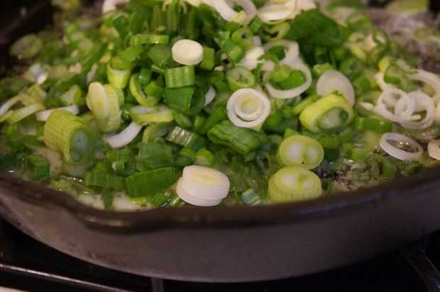 Saltear las cebollas hasta que suave pero no marrón; agregar el ajo unos minutos antes de que la cebolla se ablande.