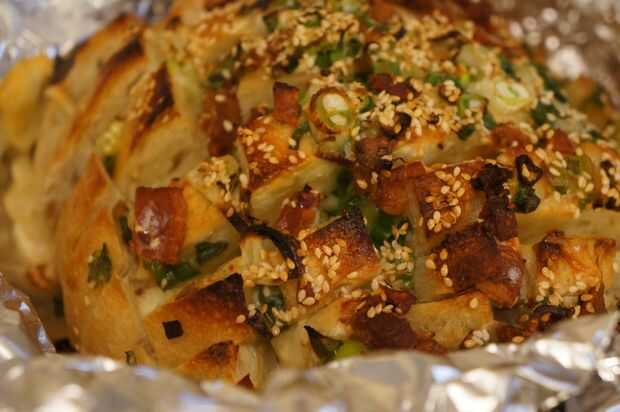 Sacar el pan del horno y deje que se enfríe lo suficiente como para tocar.