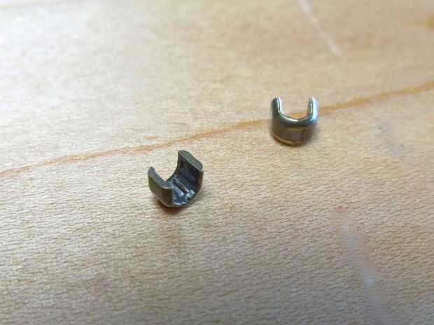 Luego tomar la tira de cremallera extra y doble de abajo muy duro con sus plyers donde habría ido estos últimos dientes.