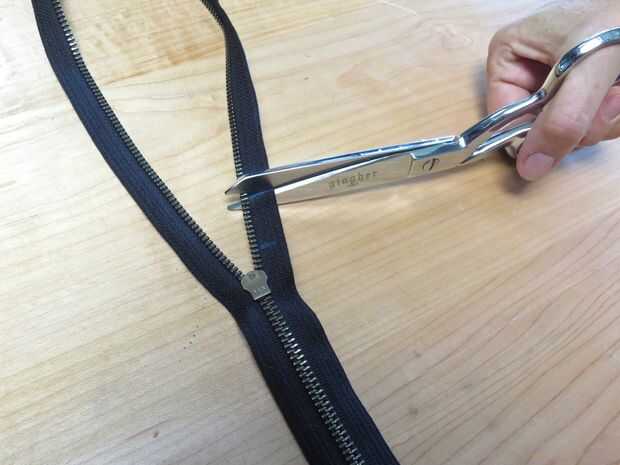 Marque primero donde desea su cremallera para terminar. Luego corte la cremallera alrededor de una pulgada arriba de su marca, asegurándose de que el tirón de la cremallera es algunas pulgadas debajo de donde usted está cortando.