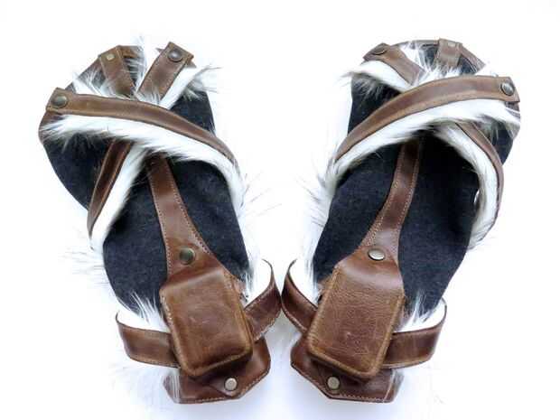 Entonces agregué broches en los extremos de las correas de piel/cuero/led y correspondiente copias instantáneas a lo largo de los bordes superiores del brazalete, aproximadamente 2 pulgadas de la pinta central a cada lado. Esto es donde las correas se fijan después de envoltura alrededor del brazo.