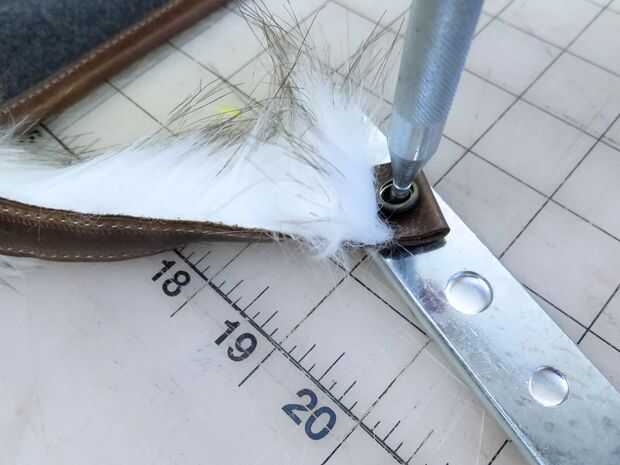 Me adde un remache en el extremo superior para ayudar a mantener el cuero las piezas en su lugar y clavado hacia abajo el pequeño grifo en la base de la cavidad de la batería por razones puramente estéticas.