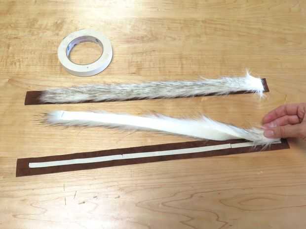 Para coser los tubos para mi las tiras de LED, tomé mi correas de cuero y había pegado a una longitud de cinta de doble cara por la mitad en el lado de la carne (parte posterior) de la piel. Luego pegué las tiras de mi piel hasta la cinta con el lado peludo arriba, centrado en el cuero. También podría hacerlo con los pernos, pero el grueso del cuero hace fijando un poco molesto.
