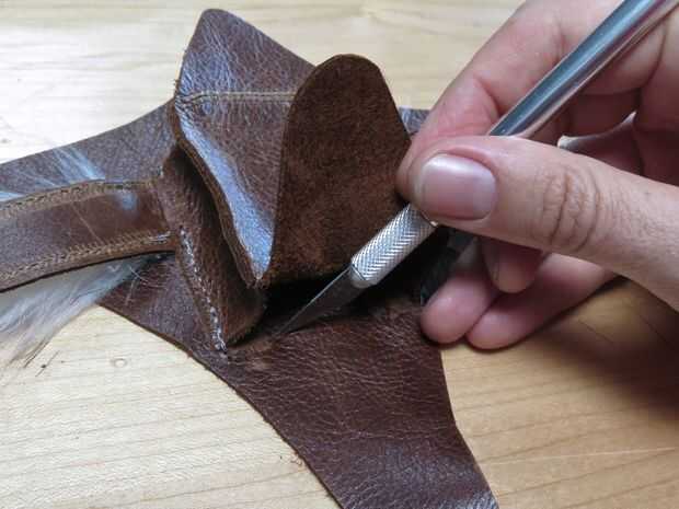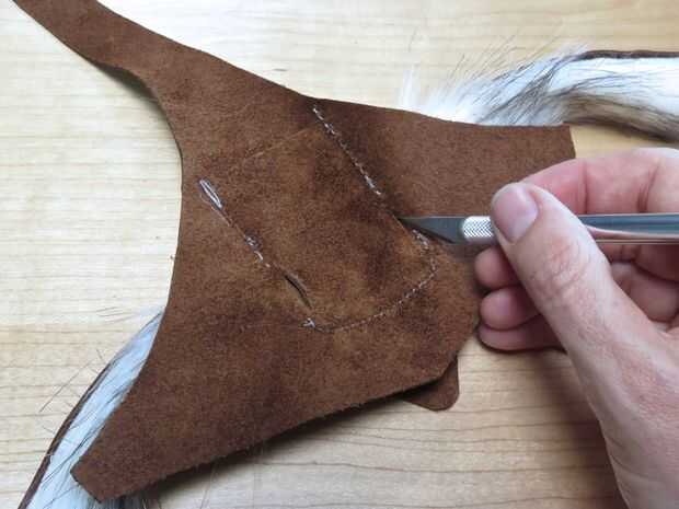 Para activar los LEDs para deslizarse en sus tubos desde abajo, cortar ranuras en la capa inferior de la piel, dentro de los huecos en mi línea de costura.