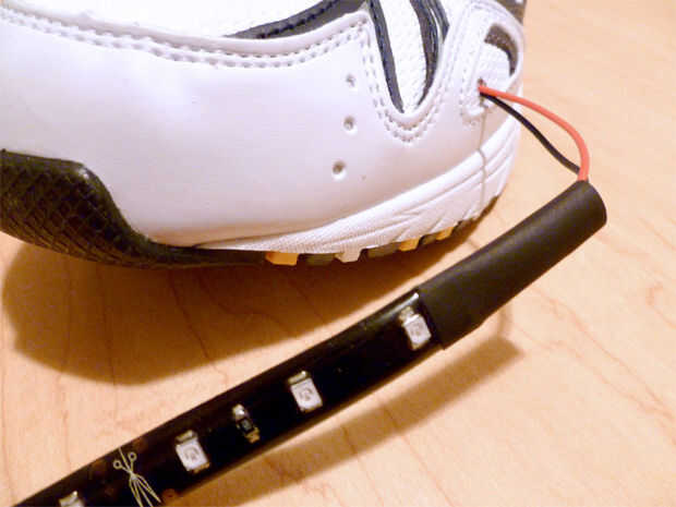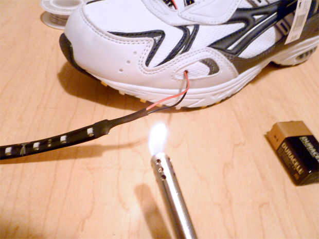 Coloque el tubo de contracción sobre la tira L.E.D. El tubo se contrae con el calor. No tengo una pistola de calor, por lo que estoy usando un encendedor para el calor. Lugar llama 1 a 2 pulgadas de tubo y deslizarse hacia adelante y hacia atrás la llama hasta que el tubo se contrae para tamaño del deseo. El tubo sirve para proteger los alambres soldados de agua y suciedad del exterior. También puede utilizar cinta aislante de.