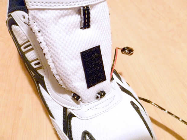 Lugar al otro lado de la tira de Velcro en la lengüeta de la zapatilla.