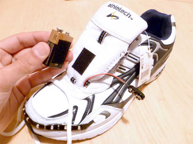 crear sus propio zapatillas forradas Super brillante LED que parpadean con múltiples patrones.1.0 CARACTERÍSTICAS:-1 color LED-6 patrones-controlan de sensores reed + imanes que le dan a paso a través de patrones-diseño desmontable velcro-pequeño, us