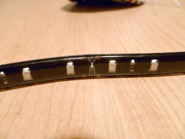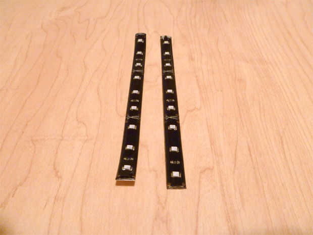 Agarra tu pie 1 tira L.E.D y cortar por la mitad a lo largo de la marca de corte.