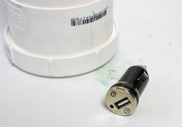 2. a continuación perfore un agujero para el cargador USB. Este debe ser un ajuste apretado.