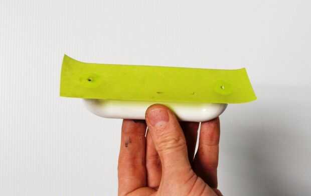 1. coge un trozo de cinta adhesiva y marcar los orificios en una de las manijas como se muestra a continuación.