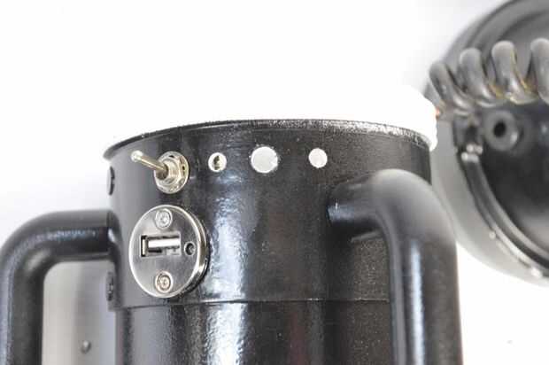 1. en primer lugar algunos agujeros para el enchufe de carga y coloque en el cuerpo de la antorcha.