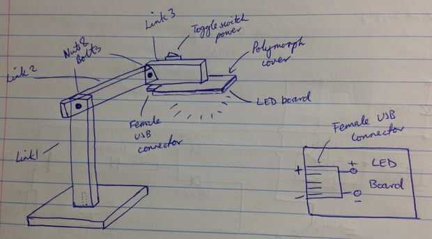 he diseñado esta lámpara como parte de mi exposición de la tesis en la Universidad. Es una pequeña versión de una clásica lámpara de escritorio articulado que es alimentada por un puerto USB estándar.La lámpara puede ser enchufada directamente en un