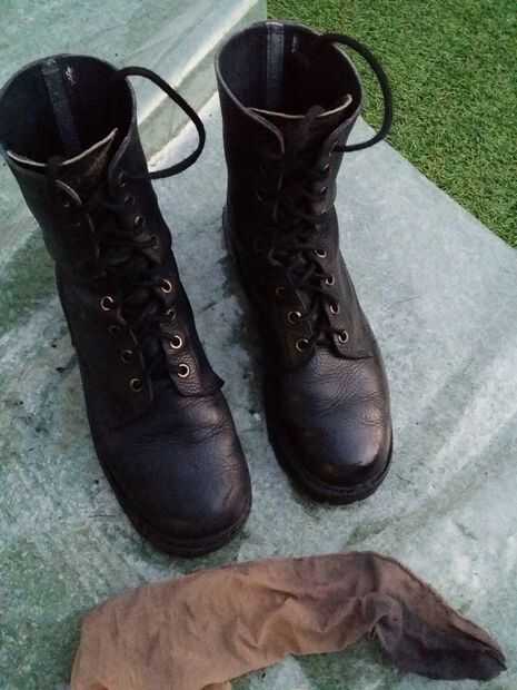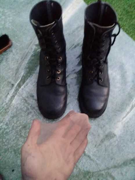 este es mi primer Instructable... Ser agradable: PEn primer lugar, usted necesitará un par de cosas;Un par de botas de botas combate de taladro.Tres ollas de Kiwi negro zapato polaco.Un rotulador.Un par de medias.Una paquete de algodón.Scotch Bright.