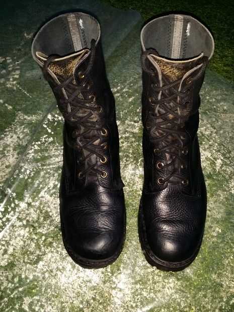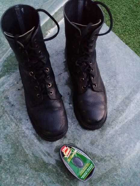 este es mi primer Instructable... Ser agradable: PEn primer lugar, usted necesitará un par de cosas;Un par de botas de botas combate de taladro.Tres ollas de Kiwi negro zapato polaco.Un rotulador.Un par de medias.Una paquete de algodón.Scotch Bright.