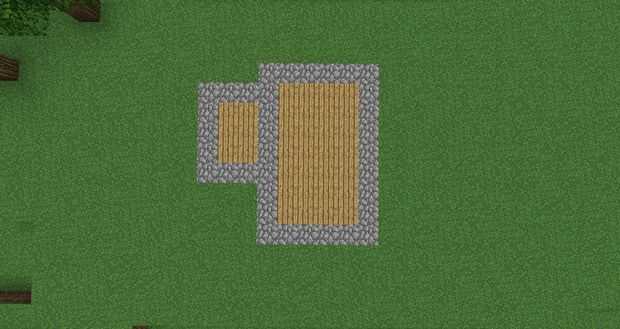 Después de haber formado el pedazo de tierra a sus deseos, van a querer sacar la forma básica de la casa que se construirá. Otra vez, tiempo es todo, por lo que mi diseño es bastante simple. La red es un rectángulo de 6 X 9, con un menor desplazamiento de rectángulo de 3 X 5 en uno de los lados largos del 9 ladrillo. Esto le da un diseño simple casa, con espacio para un porche.
