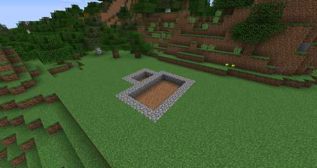 Continuación tendrá su guijarro. Después de la minería la cantidad requerida, el borde todos los bordes con ella. Esto le ayudará cuando usted está construyendo las paredes más adelante. A continuación, tomar tus tablas y llenar el resto del agujero de manera que esté plana una vez más.