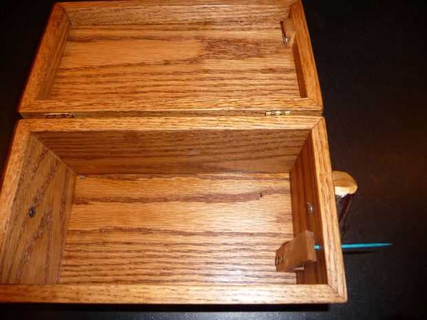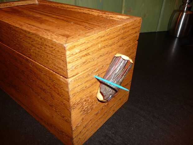 "Twin Lock Box" es una caja de rompecabezas de madera cerradura de combinación que diseñé. Apliqué al mecánico de mi "Tricky abrir botella" a este cuadro.Esta caja del rompecabezas tiene cinco llaves en ambos lados. Usted debe empujar