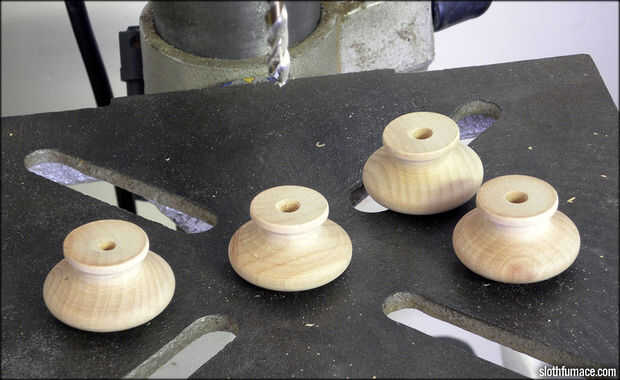 Tengo que perforar a los mandos un poco para aceptar los taquetes de 1/4 de pulgada y también Perfore las tapas de los postes de la cama. Me gustaría hacer esto con un boomstick, pero creo que daría muchas astillas.