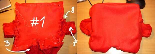 Cuando haya terminado Paso 13 y aplica en la cara, coser la parte delantera como la parte de atrás y recuerda dejar una abertura en un pie!