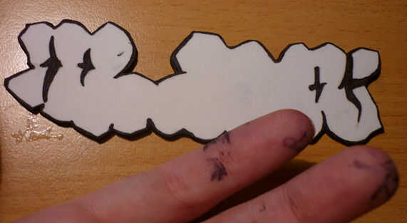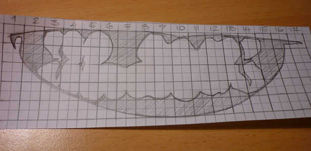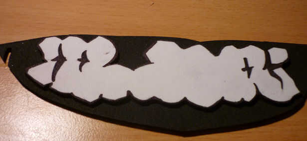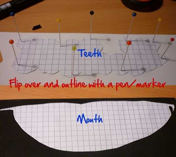 2) voltear el papel, dibuja un contorno de la boca en el caucho de esponja negro.