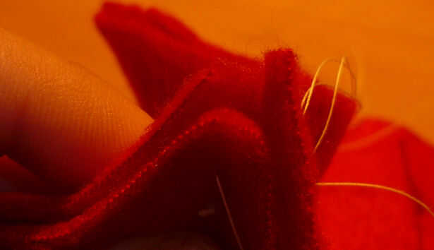 Los lados del derecho de la tela debe estar uno frente al otro. Esto significa que el lado donde has dibujado el cuadrado con la costura debe ser visible al unir dos piezas.