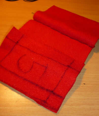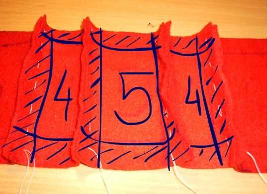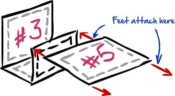 Rodillo hacia fuera uno de los pies para que la tela es el lado derecho hacia arriba y coloque la pieza #5 de modo que los lados del derecho de la tela están uno frente al otro. Alinee el lado más largo de las piezas #4 y #5 y conectar.