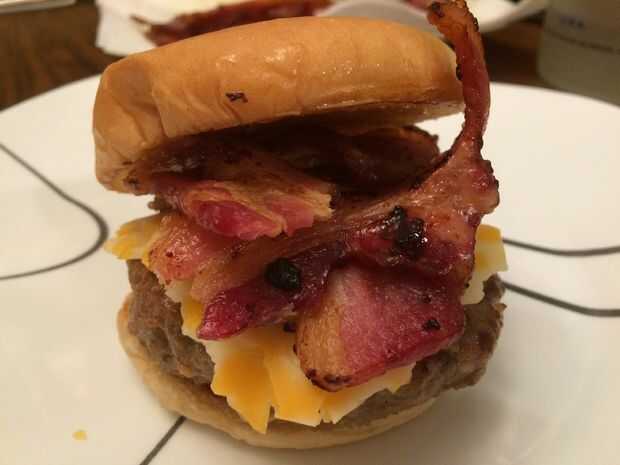 la hamburguesa final tocino, tocino incorporado en cada aspecto de la bestia!!Paso 1: ingredientes2 libras de tocino orgánico1 lb de carne Angus orgánica 91-94 bollos orgánicos1 patata grande de orgánico1 C aceite de oliva ecológico1 tocino T condime