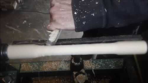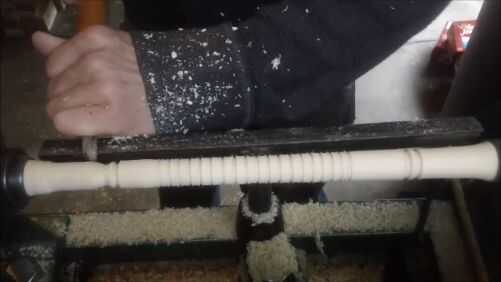 Para mi mango encontré un pedazo de madera que era más o menos la longitud correcta y lo convirtió en el torno. Guardé muy simple y solo poner algunas líneas en el centro, donde agarra mi mano.
