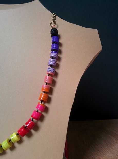 El año pasado encontré algunos botones coloridos de una tienda de artesanía y vino para arriba con estos arco iris inspirado pendientes. Desde entonces yo quería hacer un collar usando estos botones pero funcionó vienen buenas ideas hasta hoy.