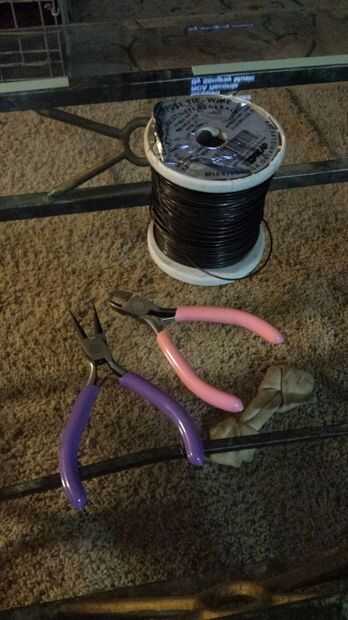 18 GA General propósito-alambre del lazo (que sólo he visto en uno color, sucio-marrón-gris, pero que funciona perfectamente para el look que quiero. Usted puede conseguir de color, o hilos brillantes, tiendas de artesanía en la mayoría si eso es lo que prefiere.)