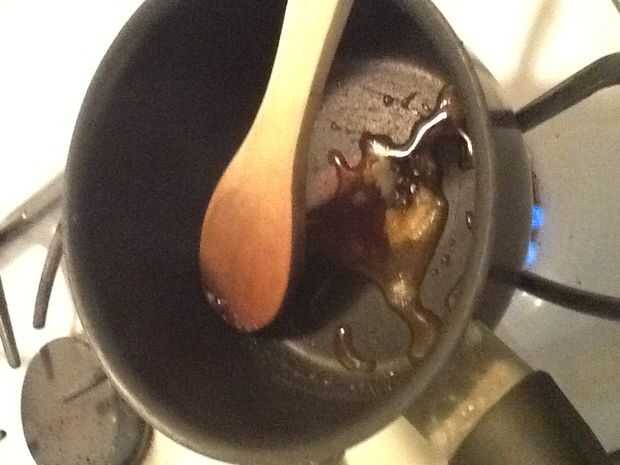 Antes de que suba el tempurature, agregar el colorante (si, realmente no necesita el ámbar color del caramelo es hermosa)