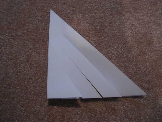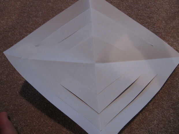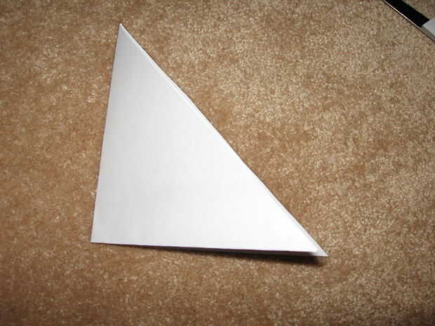 Cut the paper. Dobla el papel y cortar para hacer un cuadrado, luego doble en el triángulo que se muestra. Luego realizar tres cortes y desplegarlo.