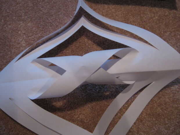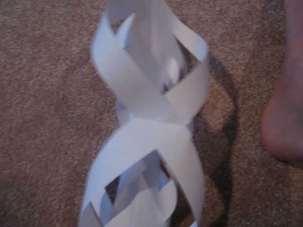 Doble la plaza en forma de cannoli y cinta adhesiva. Luego, voltee todo el asunto y doblar las dos tiras de la otra manera. Luego dé vuelta todo otra vez y únalos con cinta adhesiva los. Continúe hasta que todas las tiras se hacen.