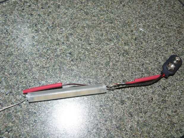 Si usted toma una mirada cercana en el cuadro 2 º notará que el trozo de plástico parece de un palillo del pegamento de una pistola de pegamento caliente. ¿Palillo del pegamento? ¿Qué es un Instructable sin un palillo del pegamento? ¿Qué sucede cuando un LED es brilló en un palillo del pegamento real? Créalo o no, lo realmente luce como un palillo del resplandor! Qué es lo genial de esto es que la barra es un difusor muy bajo costo. El difusor propaga la luz por lo que es visibles 360 grados.