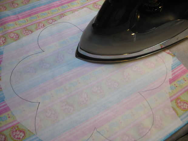 Mi tela techo tenía un diseño floral así que decidí ir con flores. Para hacer los apliques que se necesita: