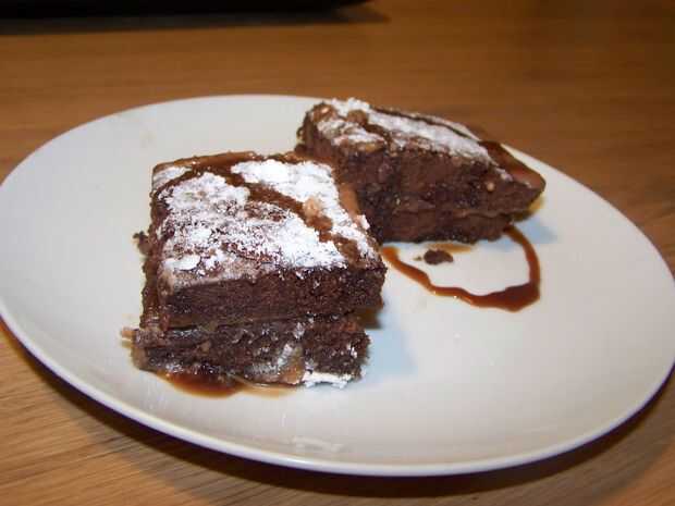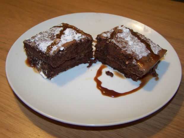 Consiste en un bizcocho de chocolate intercalada con un increíble chocolate relleno y espolvoreado con azúcar glas.