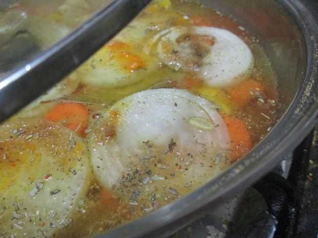 Agregar 2 tazas de agua, hasta que las verduras estén casi cubiertas.